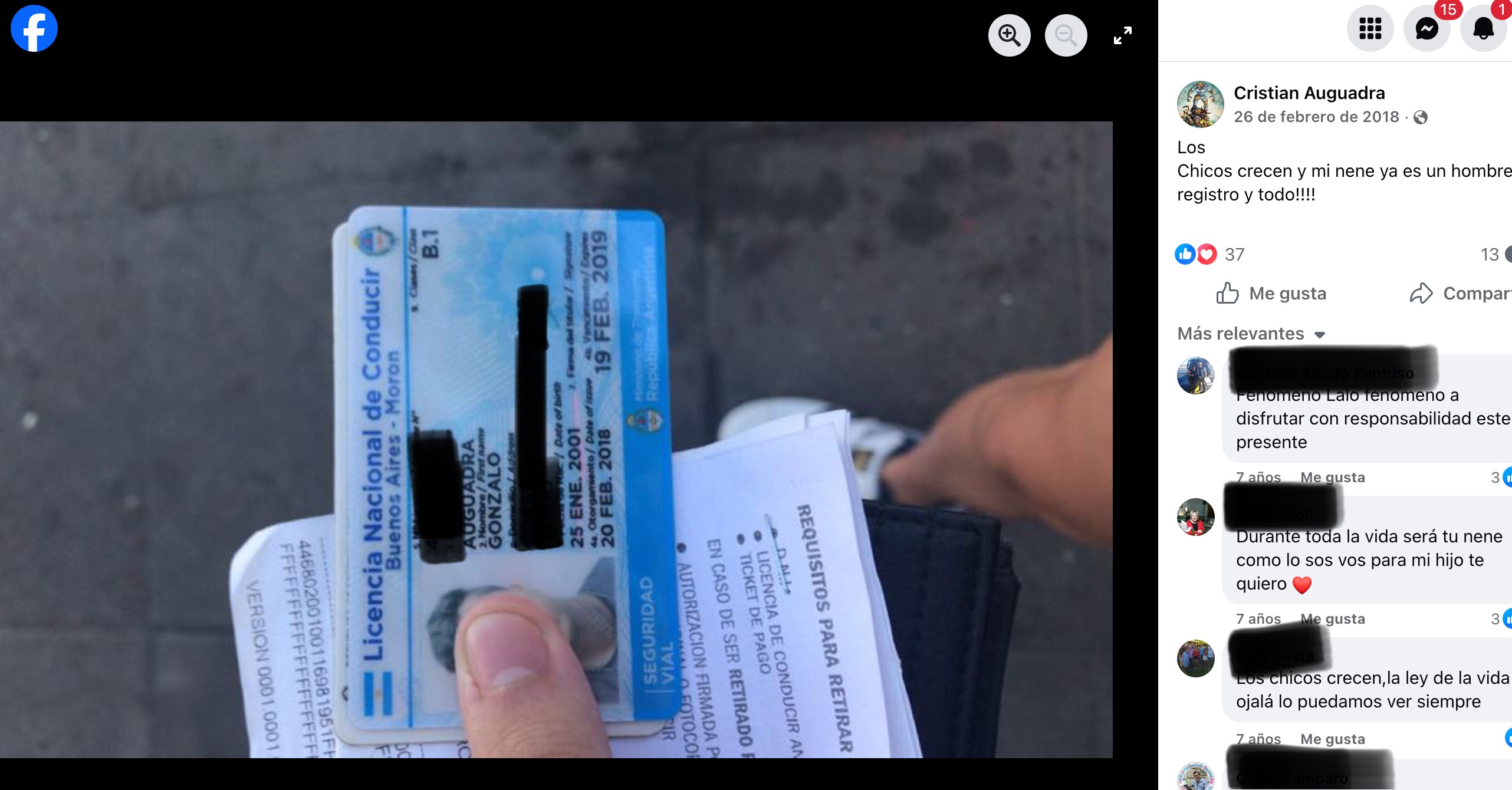 Escuchá esto: en la escritura de venta del departamento valuado en USD 3.5 millones firman como testigos el propio Pastor y "Lalo", el hijo de Auguadra apuntado por el viaje a la Fórmula 1 con fondos de la SIDE. ¿Cómo sabemos que es el hijo? Porque el genio del padre tiene un Facebook abierto en el que cuelga información privada de su familia. Lo que leíste: el titular de la SIDE tiene un Facebook abierto en el que sube datos personales e incluso una foto completa del registro de conducir del hijo. Este es el tipo designado para "profundizar la modernización técnica" de la SIDE. Este es el nivel de gente que maneja la principal agencia de inteligencia del país. No busques la cuenta de Facebook porque ya la cerró. Dice que él no es ningún gil.